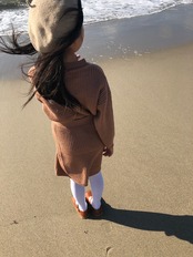 こっくり優しいカラーのニットのセットアップ